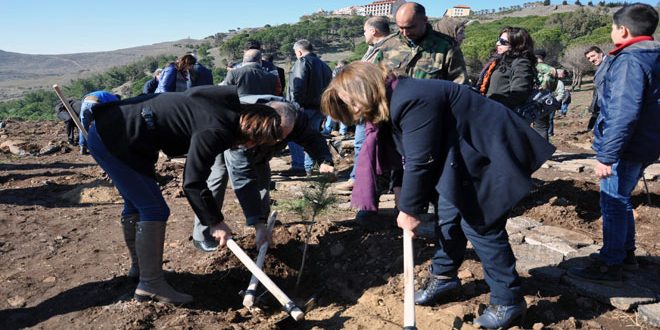 وأكد القادري أن الشجرة كانت ولا تزال عبر العصور رمزا للخير والعطاء والخصب والنماء ولطالما دل وجودها على توفر معطيات الحياة والعيش الكريمين مبينا أن يد الغدر والإرهاب طالت ثروتنا الحراجية في سورية من خلال الحرائق المفتعلة والاحتطاب الجائر والتعديات على الغابات والمحميات إلا أن الجهود تبذل من قبل جميع العاملين لحماية ثروتنا الوطنية مشيرا إلى أن سورية رغم ما تواجهه من هجمة شرسة لم تتخل عن نهج التنمية والتطوير في جميع المجالات التنموية والاقتصادية والخدمية داعيا إلى تضافر جميع الجهود المحلية والاهلية للمساعدة في حماية ورعاية الغابات والمحميات.