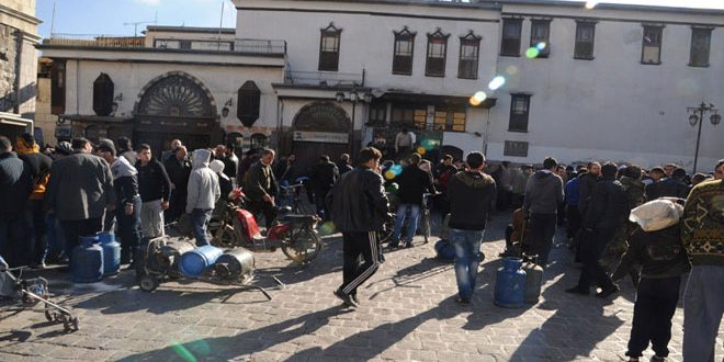 استهلاكية دمشق توزع عبر سياراتها الجوالة المياه والغاز والمواد الغذائية