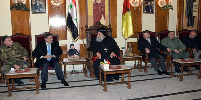 من جانبه أشار محافظ حلب حسين دياب خلال تقديمه التهنئة للبطريرك أفرام الثانى بأعياد الميلاد ورأس السنة إلى أن تزامن هذه الأعياد مع انتصارات حلب على الإرهاب هي بشرة خير بأن يكون العام الجديد استكمال انتصار كل سورية وتحرير أرضها من الإرهاب.