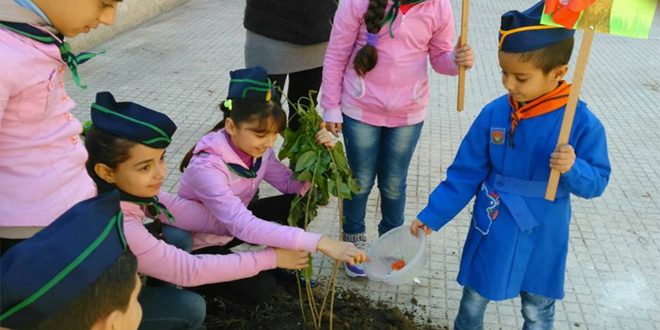 أقام فرع منظمة طلائع البعث في محافظة اللاذقية اليوم حملة تشجير ومعرضا بيئيا احتفالا بعيد الشجرة وذلك في مدرسة عبد الرحمن الغافقي.