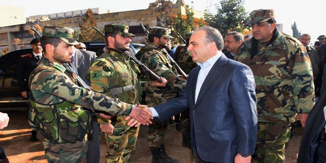 ونقل المهندس خميس خلال الزيارة لعناصر التشكيل محبة السيد الرئيس بشار الأسد وتقديره لتضحياتهم في الدفاع عن الوطن لافتا إلى أن هذه التضحيات والبطولات “أثمرت نصرا تاريخيا في حلب وقريبا سيعم هذا الانتصار كامل الأراضي السورية”.
