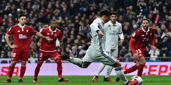 وضع ريال مدريد قدمه في الدور ربع النهائي لمسابقة كأس ملك إسبانيا بفوزه الكبير أمس على ضيفه القوي إشبيلية في المباراة التي جمعتهما على أرض سانتياغو برنابيو في ذهاب الدور ثمن النهائي.