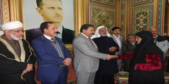 أقامت محافظة الحسكة اليوم حفل تكريم في مبنى المحافظة شمل 20 أسرة من ذوي الشهداء والمعوقين والأيتام.