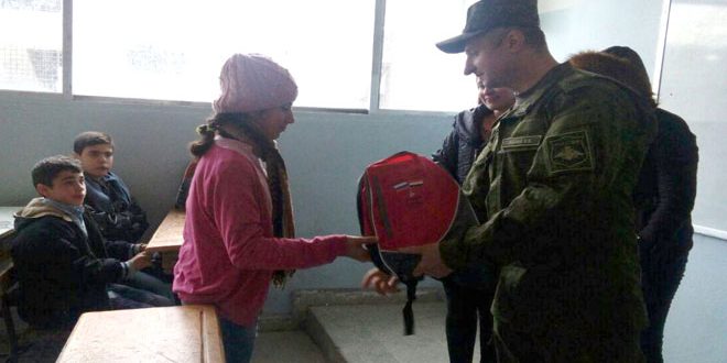 توزيع حقائب مدرسية مقدمة من أطفال روسيا على أبناء الشهداء والمتفوقين باللاذقية