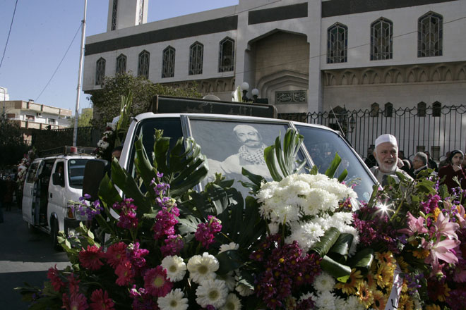 واحتشد جمع كبير من الفنانين والمثقفين السوريين في مقدمتهم وزير الإعلام المهندس محمد رامز ترجمان لوداع فنان الشعب حيث صليت على جثمانه صلاة الجنازة في جامع الأكرم عقب أداء صلاة الجمعة ليوارى الثرى بعدها في مقبرة الباب الصغير بدمشق على أن يفتح باب التعازي في صالة جامع الأكرم اعتبارا من اليوم لغاية الأحد القادم من الساعة السادسة إلى الثامنة مساء للسيدات والرجال.