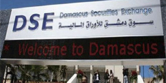 ارتفع مؤشر سوق دمشق للأوراق المالية بنتيجة جلسة تداولات اليوم 66ر25 نقطة عن الجلسة الماضية وبنسبة تغير موجبة قدرها 53ر1 بالمئة حيث أغلق على قيمة 90ر1702 نقطة بنتيجة تداول قدره 106218 سهما موزعة على 62 صفقة بقيمة تداولات إجمالية بلغت 697ر21 مليون ليرة.
