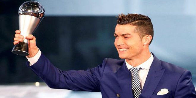 فاز كريستيانو رونالدو مهاجم البرتغال وريال مدريد الإسباني بجائزة الاتحاد الدولي لكرة القدم “فيفا” لأفضل لاعب في العالم عام 2016 اليوم متفوقاً على غريمه الأرجنتيني ومهاجم برشلونة ليونيل ميسي الذي حل ثانياً في التصويت بينما جاء انطوان غريزمان في المركز الثالث.
