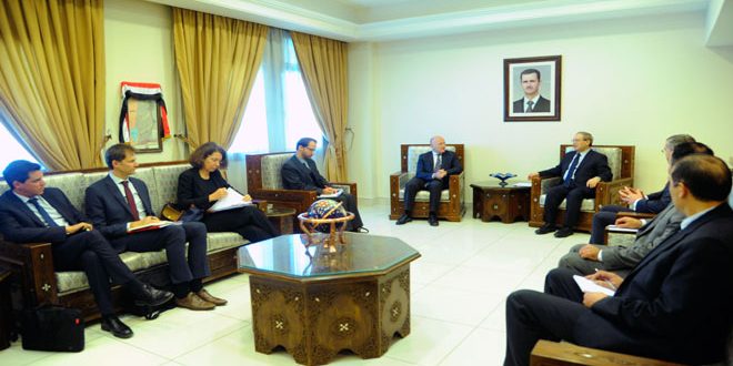 استقبل الدكتور فيصل المقداد نائب وزير الخارجية والمغتربين صباح اليوم السفير مانويل بسلر عضو المجلس الاتحادي السويسري للمساعدة الإنسانية رئيس وحدة المساعدة الانسانية لدى وزارة الخارجية السويسرية والوفد المرافق.