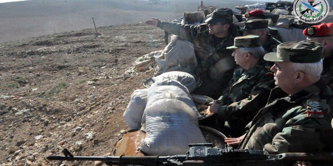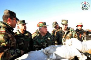 بتوجيه من السيد الرئيس الفريق بشار الأسد القائد العام للجيش والقوات المسلحة قام رئيس هيئة الأركان العامة للجيش العماد علي عبد الله أيوب بجولة ميدانية على عدد من الوحدات العسكرية في ريف حمص الشرقي اطلع خلالها على الوضع الميداني وتفقد أحوال المقاتلين والظروف الميدانية المحيطة بعملهم.
