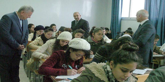 تفقد محافظ السويداء عامر ابراهيم العشي وامين فرع السويداء لحزب البعث العربي الاشتراكي ياسر الشوفي اليوم سير العملية الامتحانية في عدد من المدارس والكليات.