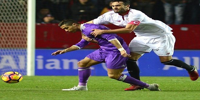 وبدا أن ريا ل في طريقه لتوسيع الفارق إلى خمس نقاط مع ملاحقه إشبيلية عندما تقدم بهدف من ركلة جزاء نفذها كريستيانو رونالدو في الدقيقة 67 ليحرز هدفه رقم 56 من علامة الجزاء في الدوري ويعادل رقما قياسيا.