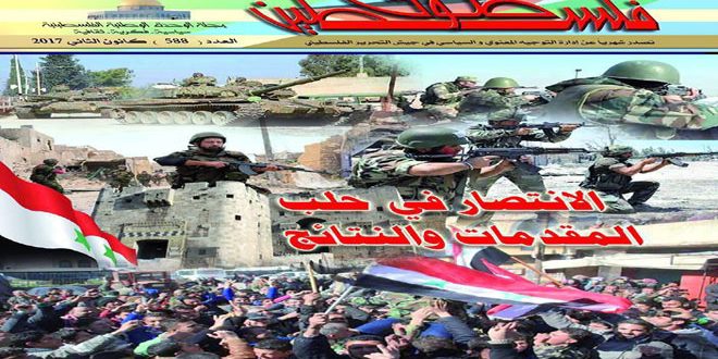وفي الافتتاحية كتب رئيس التحرير أحمد صوان مقالا بعنوان “الانتصار في حلب المقدمات والنتائج” وكتب محمد مباركة موضوع الغلاف “حلب بوابة الانتصارات “أما الكاتب والمحلل السياسي عارف الآغا فكتب مقالاً بعنوان “اليمن سيكون مقبرة نظام آل سعود”.