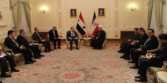 وهنأ الرئيس روحاني خلال استقباله في طهران اليوم المهندس عماد خميس رئيس مجلس الوزراء بحضور السفير السوري في طهران الدكتور عدنان محمود الشعب السوري على الإنجازات الأخيرة في مكافحة الإرهاب وقال “إن رسالة تحرير مدينة حلب تتمثل في قوة الشعب السوري في الدفاع عن بلده” مضيفا “إن الإرهابيين وحماتهم لن ينجحوا في التوصل إلى أهدافهم”.