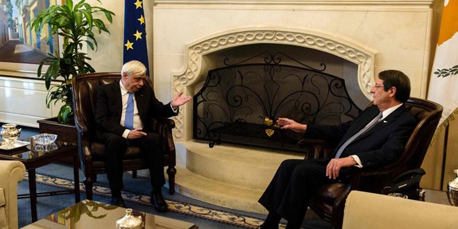 ونقلت “ا ف ب” عن الرئيس اليوناني بروكوبيس بافلوبولوس قوله بعد لقائه الرئيس القبرصي نيكوس اناستاسياديس في نيقوسيا اليوم.. “لا يمكن أن تكون هناك قوات احتلال او ضمانات إذا كانت تركيا والأقلية القبرصية التركية في الجزيرة ترغبان بالحل”.