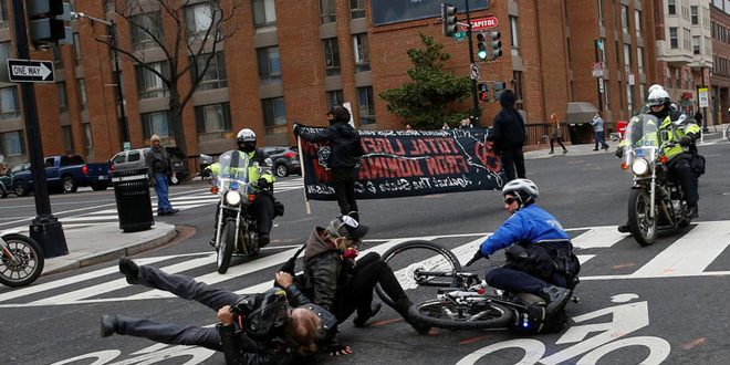 أعلنت شرطة العاصمة الأمريكية واشنطن اعتقال 95 شخصا إثر أعمال شغب لمعارضين لتنصيب دونالد ترامب رئيسا جديدا للولايات المتحدة شهدتها شوارع قريبة من مبنى الكونغرس.