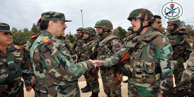 بتوجيه من الرئيس الأسد.. العماد الفريج يقوم بجولة ميدانية إلى وحداتنا العاملة في درعا