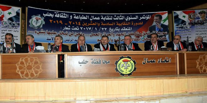 وبين أن انعقاد مؤتمرات النقابات العمالية يتزامن مع انتصارات جيشنا البطل على الإرهاب وتطهير حلب من رجس التنظيمات الإرهابية المسلحة موضحا أن هذا النصر تحقق بفضل صمود الشعب وتضحيات الجيش وحكمة القيادة.