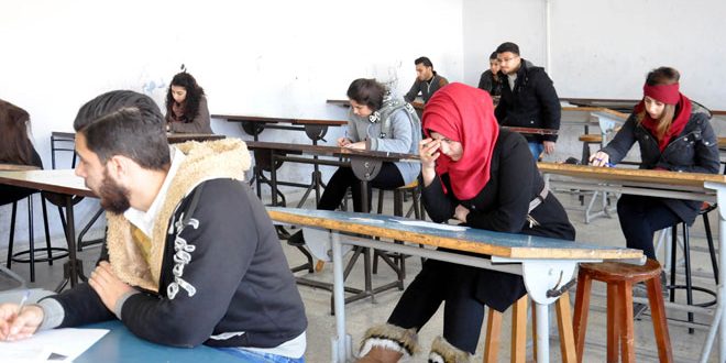 طلاب جامعة البعث في حمص يواصلون تقديم امتحاناتهم وسط أجواء مريحة وهادئة