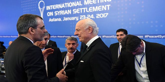 بدوره أكد دي ميستورا خلال اللقاء استعداد الامم المتحدة لتسهيل الحوار بين الحكومة السورية والمجموعات المسلحة خلال اجتماع استنة معربا عن أمله في أن ينجح الاجتماع في تثبيت وقف اطلاق النار وتوفير الارضية لتسوية سياسية للازمة في سورية.