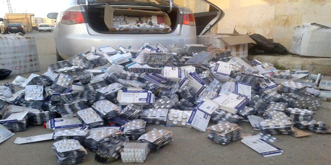 ضبطت دورية من الجمارك سيارة محملة بكميات كبيرة من الادوية ذات المنشأ الأوروبى كانت معدة للتهريب إلى التنظيمات الإرهابية التكفيرية فى ريف حماة الشمالي.