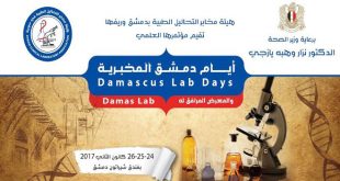 تحت عنوان “أيام دمشق المخبرية” بدأت اليوم فعاليات مؤتمر علمي تنظمه هيئة مخابر التحاليل الطبية بدمشق وريفها ويستمر حتى الخميس القادم في فندق الشيراتون بدمشق.