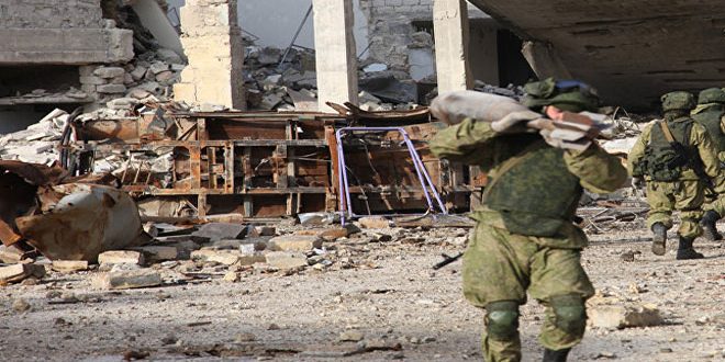 وأرسلت روسيا في كانون الأول الماضي مجموعة من الخبراء المتخصصين بتفكيك الألغام للمساهمة مع عناصر الهندسة في الجيش العربي السوري في تطهير الأحياء الشرقية لمدينة حلب بعد إخراج المجموعات الإرهابية التكفيرية منها.