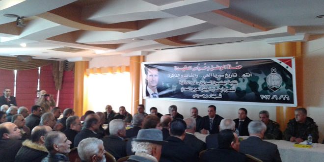 ونوه أركان الشوفي عضو القيادة القطرية لحزب البعث العربي الاشتراكي رئيس مكتب التربية والطلائع بتضحيات الشهداء وجرحى الجيش العربي السوري في مواجهة الإرهاب والحفاظ على تراب الوطن.