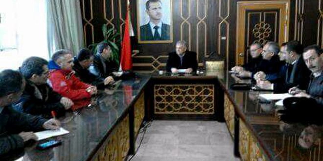 دعا محافظ السويداء عامر ابراهيم العشي الدوائر والمؤسسات المعنية إلى العمل بشكل مستمر على مدار الساعة لمتابعة كل طارئء والتعامل معه بالسرعة الكلية والاستجابة لطلبات واحتياجات المواطنين في ظل الظروف الجوية السائدة.