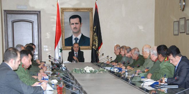أكد اللواء محمد الشعار وزير الداخلية خلال اجتماعه اليوم مع قادة شرطة المحافظات ضرورة تعزيز سلطة القانون والحفاظ على الأمن العام وتوفير كل العوامل التي تعزز المناعة الوطنية وتعزيز وحدات قوى الأمن الداخلي بالوسائل اللازمة لتكون جاهزة لتنفيذ المهام الملقاة على عاتق وزارة الداخلية.