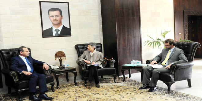 بحث وزير الصحة الدكتور نزار يازجي مع رئيسة بعثة اللجنة الدولية للصليب الأحمر ماريان غاسر إمكانيات التعاون بين الجانبين خلال المرحلة المقبلة ولا سيما من ناحية ترميم المؤسسات الصحية في مدينة حلب وتأمين الأدوية النوعية وتلبية الاحتياجات الصحية للمواطنين.