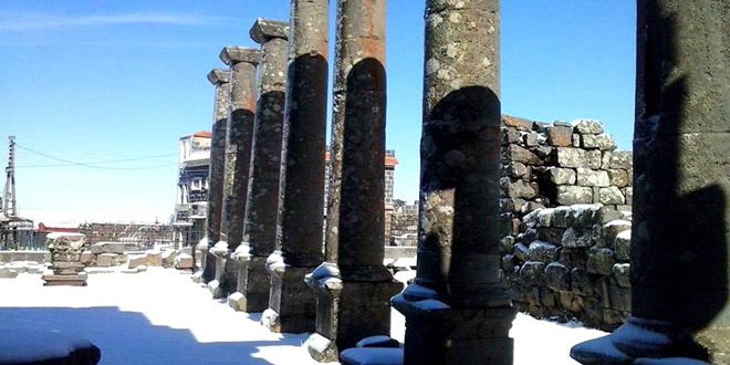 الثلوج في بلدة قنوات بمحافظة السويداء 30-1-2016