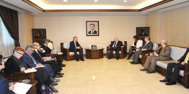استقبل وليد المعلم نائب رئيس مجلس الوزراء وزير الخارجية والمغتربين قبل ظهر اليوم فيليبو غراندى المفوض السامى للأمم المتحدة لشؤون اللاجئين والوفد المرافق.