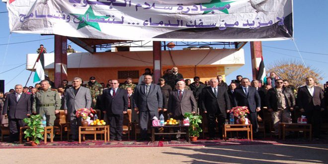 في إطار المصالحات المحلية تمت اليوم تسوية أوضاع 600 شخص خلال فعالية وطنية أقيمت اليوم في بلدة غباغب بريف درعا الشمالي.