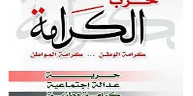 جدد حزب الكرامة المصري التأكيد على دعمه الكامل لسورية في حربها المشروعة ضد الإرهاب التكفيري والتدخل العسكري الأجنبي مطالبا المجتمع الدولي بوضع حد للاعتداءات الصهيونية والأمريكية على الأراضي السورية وإدانتها.