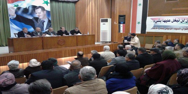 ودعا الأعضاء إلى إعادة تفعيل عمل المؤسسة السورية للتجارة بما ينسجم مع مرسوم إحداثها الذي حدد مهامها باستيراد وتصدير المواد الكيميائية والغذائية والأدوية ومواد البناء وبيع الإطارات والآليات وهياكلها إضافة إلى رفد المصارف بمادة المازوت من أجل استمرارية عملها وتشميل جميع العاملين بالضمان الصحي ورفد المؤسسة الاستهلاكية بسيارات جديدة والعمل على تأمين جميع مستلزمات الإنتاج الزراعي وإعادة التمويل للغايات التي كانت تمول سابقا وفق جدول الاحتياج لكون المحافظة آمنة.