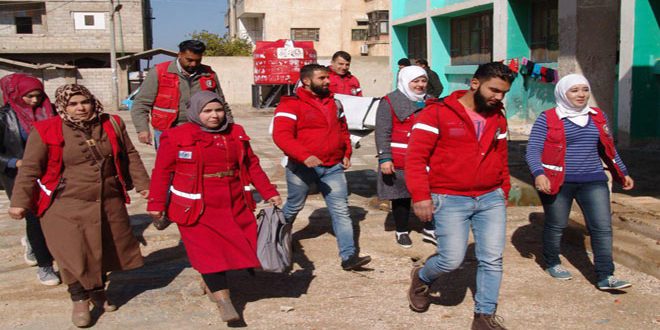 وأوضح رئيس فرع منظمة الهلال الأحمر العربي السوري بدرعا الدكتور أحمد المسالمة أن الفرع يستجيب لكل الحالات ويعمل على تجهيز مراكز الإقامة المؤقتة بالمستلزمات الضرورية كما يقدم الخدمات الصحية للقاطنين ضمن عيادات الفرع عن طريق طواقمه الاسعافية وسيارات الإسعاف مبينا أن الفرع عمل على تأمين احتياجات العائلات المهجرة من مناطق وقرى حوض اليرموك إلى مدينة درعا من بطانيات وفرشات وسلات مطبخ ومواد غذائية وعوازل ومياه شرب وغيرها إضافة إلى استقبال عدد من طلاب الجامعة من المنطقة نفسها بغرفتين ضمن المدرسة الخضراء لتقديم الخدمات على مدار الساعة.