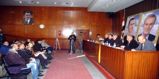 وفيما يخص المنطقة الحرفية في القرداحة أشار المحافظ الى انه تم انهاء جميع الاستملاكات والتجهيزات للبدء بالعمل كما تم تأمين التمويل اللازم لمشروع المياه في كفردبي المسيترة من المنظمات الدولية وحاليا المناقصات جارية بشأن بناء خزانات المياه.