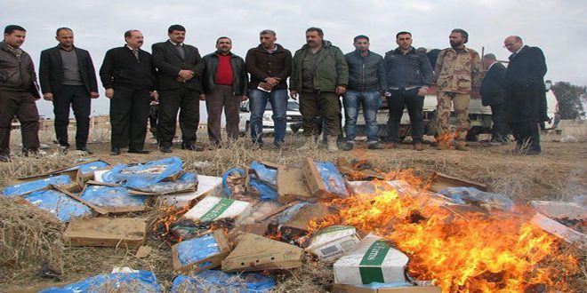 وقال مدير الجمارك بالحسكة كاميرون طه في تصريح لمراسل سانا.. إن “الكمية التي تمت مصادرتها اليوم في منطقة سوق الهال بمدينة الحسكة عبارة عن لحوم فروج مجمد ذات منشأ “أمريكي وتركي” دخلت بطريقة غير شرعية إلى المحافظة وهي غير صالحة للاستهلاك البشري وكانت مخزنة بطريقة سيئة حيث تم إتلافها بشكل كامل واتخاذ الإجراء القانوني بحق المخالف”.