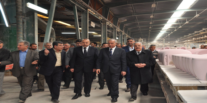 وبين محافظ حماة في تصريح صحفي إننا نشهد اليوم ولادة جديدة للقطاع الصناعي في سورية من خلال إعادة إقلاع العمل في الشركة العربية لصناعة البورسلان والأدوات الصحية والشركة العامة للمنتجات الحديدية والفولاذية اللتين تمثلان باكورة المعامل التي تم عودة انطلاق العملية الإنتاجية فيهما دعماً للاقتصاد الوطني وإعادة إعمار سورية .