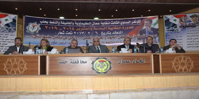 تركزت مداخلات عمال نقابتي النفط والصناعات الكيماوية الخفيفة في حلب خلال مؤتمريهما اليوم حول تشميل عمال الشركة السورية للنفط بالطبابة وحل مشكلة عودة العامل المنقطع نتيجة “حصار العصابات الإرهابية المسلحة” إلى عمله وإحداث وحدة غاز متنقلة لتعبئة الغاز المنزلي والصناعي ومنح العاملين في قطاع النفط طبيعة العمل.