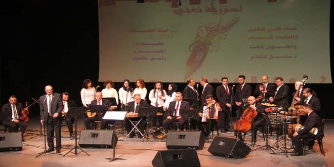 أحيت فرقة الشام الموسيقية بقيادة المايسترو رفيق طلعت مساء اليوم أمسية موسيقية بعنوان ” لسورية نغني ” بالتعاون مع مديرية المسارح والموسيقا وذلك على خشبة مسرح الحمراء بدمشق.