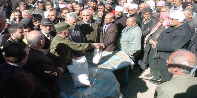 وأشار محافظ السويداء عامر العشي خلال مشاركته في التوزيع إلى أن هذه المساعدات تعبر عن مواقف روسيا حكومة وشعبا الداعمة لسورية ووقوفها إلى جانب الشعب السوري في التخفيف من تداعيات الحصار الجائر على سورية ومواجهة التنظيمات الإرهابية حتى تحقيق النصر ودحر الإرهاب.