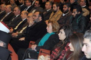 وقدم مطران حلب يوحنا جنبرت نبذة عن حياة الراحل ومناقبه ونضاله في سبيل القضية الفلسطينية وانصهاره في بوتقة آلام الشعب العربي الفلسطيني إلى جانب اعتزازه بوطنه الأم سورية.