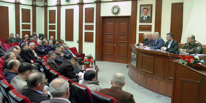حضر الاجتماع مديرو الدوائر والمؤسسات العامة وعضو قيادة فرع حزب البعث حسن الأطرش.