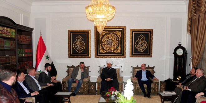 وأعرب الدكتور حسون خلال لقائه اليوم الوفد البرلماني والطبي والإعلامي الروسي الذي يزور سورية حاليا عن شكره للكنيسة الأرثوذكسية التي وقفت منذ عام 2013 وحتى اليوم في خندق واحد إلى جانب سورية وشعبها مشيرا إلى “التضحيات التي قدمها الروس خلال الحرب الإرهابية التي تشن على سورية إذ اختلطت دماؤهم مع دماء أبناء سورية في سبيل الدفاع عنها” ومثمنا في الوقت ذاته جميع المساعدات الروسية التي يتم تقديمها للشعب السوري.