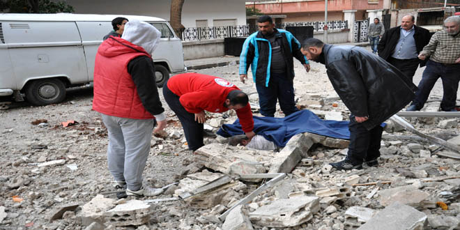 ارتقاء شهيد وإصابة 11 مواطنا بجروح نتيجة اعتداءات إرهابية بالقذائف الصاروخية على أحياء سكنية في مدينة حمص