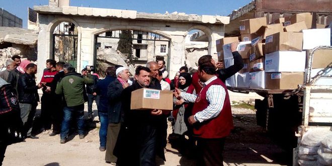 ولفت أمين سر مجلس مدينة حلب نائل قرنوب إلى أن “المحافظة تتعاون مع الجمعيات الاهلية لتوزيع السلل الغدائية وتأمين الاحتياجات الأساسية للأهالي في الأحياء الشرقية المدينة”.
