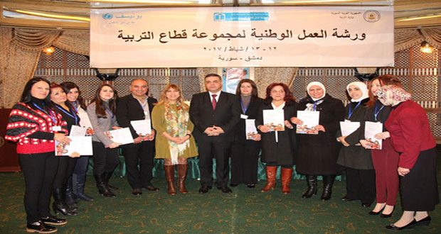 من جهتها أعربت هناء سنجر الممثلة المقيمة لمنظمة اليونيسيف عن تقديرها للجهود التي تبذلها وزارة التربية لضمان استمرار التعليم في ظل الظروف الصعبة مشيرة إلى التعاون الوثيق بين الوزارة والمنظمة الذي أثمر برفع نسبة الالتحاق بالمدرسة فضلاً عن تقديم برامج جديدة للتعلم بالإضافة إلى تأهيل المدارس وتزويد بعضها بالغرف الصفية مسبقة الصنع وافتتاح 23 مدرسة في حلب الشرقية مؤخراً بما يمكن من عودة ستة آلاف طالب إلى المدرسة فضلاً عن إطلاق دليل التدريب للعناية النفسية والاجتماعية الخاص بالمعلمين مؤكدة وجوب الاهتمام بالأطفال ذوي الاحتياجات الخاصة من خلال برامج التربية والدمج المجتمعي.