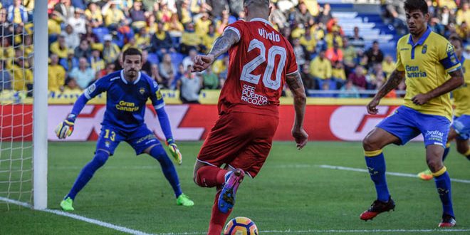 فاز إشبيلية على لاس بالماس 1-صفر اليوم ليستمر في منافسة ريا ل مدريد وبرشلونة على لقب دوري الدرجة الأولى الإسباني لكرة القدم.