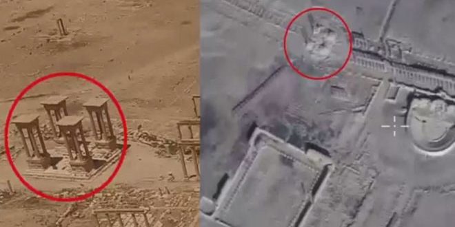 وفجر إرهابيو تنظيم “داعش” في الـ20 من الشهر الماضي واجهة المسرح الروماني والمصلبة “التترابيلون” المؤلفة من 16 عمودا في الشارع الرئيسي بمدينة تدمر الأثرية ما ادى الى تدميرهما وذلك بعد يومين من ارتكابهم مجزرة بحق الاهالي في المدينة راح ضحيتها 12 شخصا على الاقل بينهم 4 موظفين ومدرسان كان اختطفهم في وقت سابق.